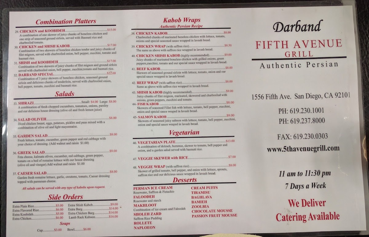 Darband Persian Grill Menu (2025 Update)